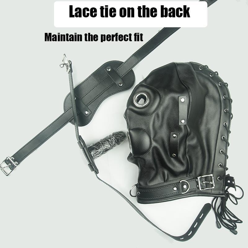 Leather Hood Mask with Removable Dildo & Ball Gag